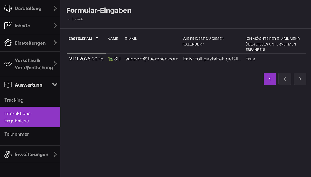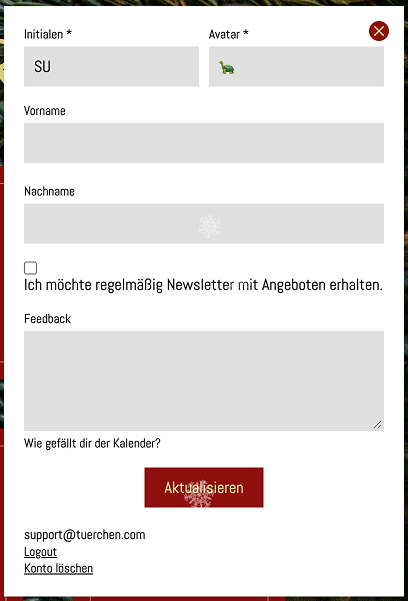 Formulare in Türchen-Kalendern dienen dazu, Daten von Nutzenden zu erfassen – etwa für die Teilnahme an Gewinnspielen, für Einwilligungen oder für zusätzliche Angaben wie Feedback und Freitextantworten.