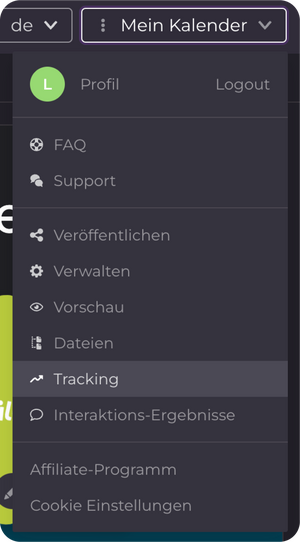 Um dein Tracking-Dashboard zu öffnen, gehe zum 'Mein Kalender'-Menü im Türchen-Editor. Dort findest du eine Übersicht über alle wichtigen Tracking-Daten deines Kalenders. Mit diesem Dashboard kannst du den Erfolg deiner Inhalte detailliert analysieren und die einzelne Türchen oder Events im Blick behalten.