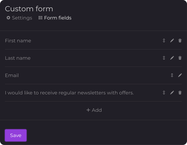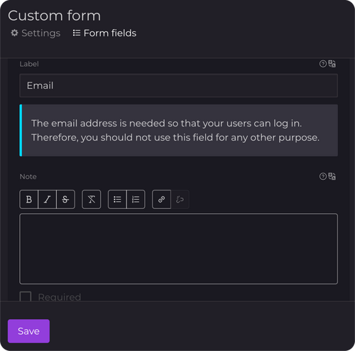 - Required fields: By default, the email address is requested. This can be extended to include fields like first or last name.